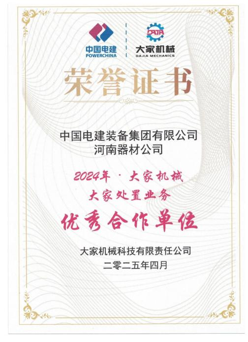 近日,在大家机械科技有限责任公司委托的业务处置过程中,九州(中国)作为项目统筹方展现出卓越的管理能力,获评大家机械科技有限责任公司“2024年大家机械大家处置业务优秀合作单位”称号。此次获评,不仅是对公司过往工作的高度认可,更是持续奋进的动力,充分彰显了公司在合作过程中的专业能力、高效服务及突出贡献。 长期以来,公司始终秉持严谨务实、合作共赢的理念,以“公平公正、规范透明”为原则,科学有序的组织开展处置工作。在大家处置业务中积极响应、高效配合,从业务的前期规划、中期监督到后期评估,每一个环节都精准把控,确保业务沿着正确的方向推进。其专业的管理水平和敏锐的市场洞察力,为大家机械平台的业务开展提供了清晰的方向和有力的支持。 未来,公司将以此为契机,充分发挥中电建设备物资管理系统平台优势,持续深化与大家机械科技有限责任公司的合作,不断提升业务水平与服务质量,携手开创互利共赢新局面。 | |